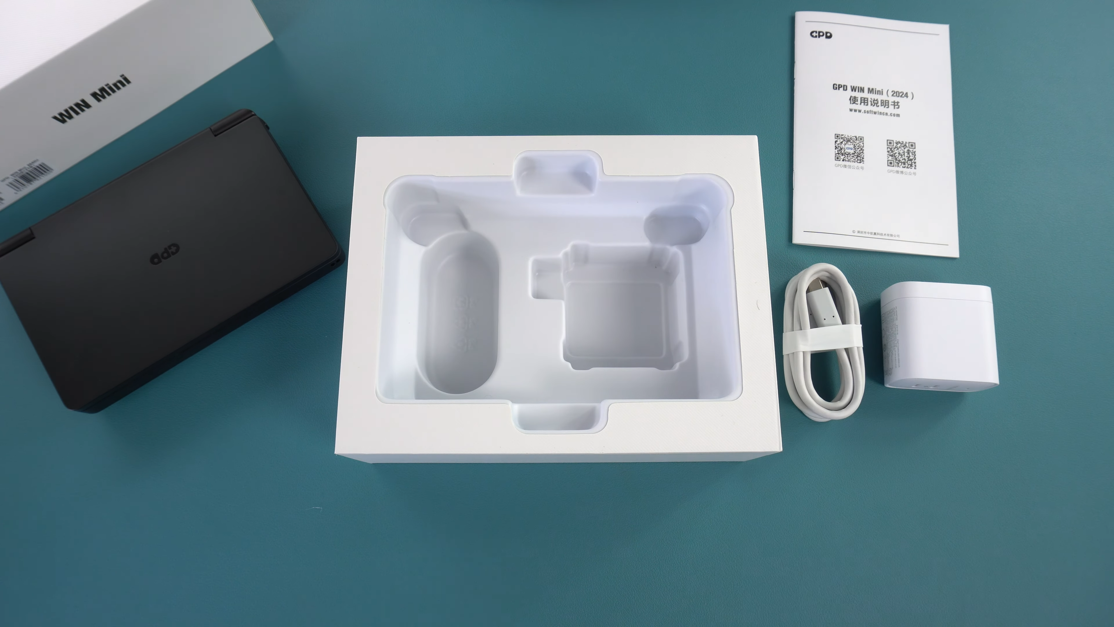 Como siempre, empezamos el análisis de GPD WIN Mini 2024 con el desembalaje. Lo primero que sacamos de la caja es un sobre que contiene la guía del usuario en inglés y chino. A continuación, tenemos el propio GPD WIN Mini 2024; lo veremos más de cerca en breve. Debajo, hay un cable de carga USB Type-C y un cargador con el adaptador correcto para tu país.