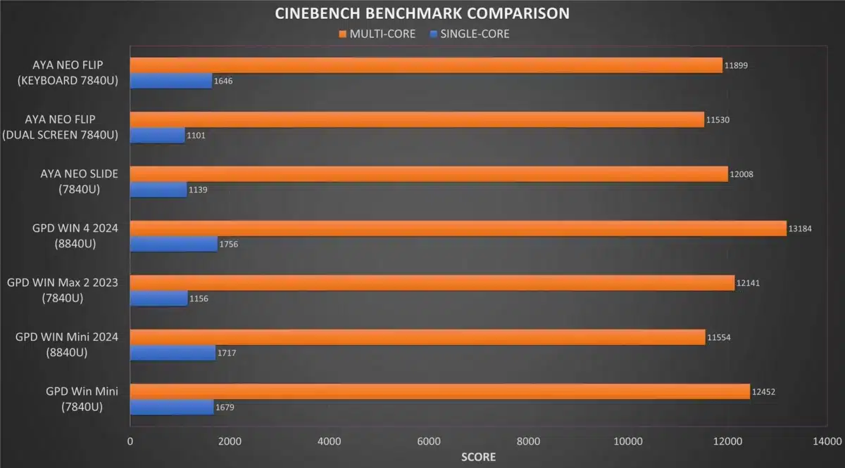 Como parte de nuestro análisis de GPD WIN Mini 2024, hemos realizado varias pruebas de rendimiento del sistema para compararlo con el PC de juegos portátil GPD WIN 4 2024, que también incorpora el procesador 8840U, así como con algunos PC de juegos portátiles de la serie 7840U de la generación anterior.
