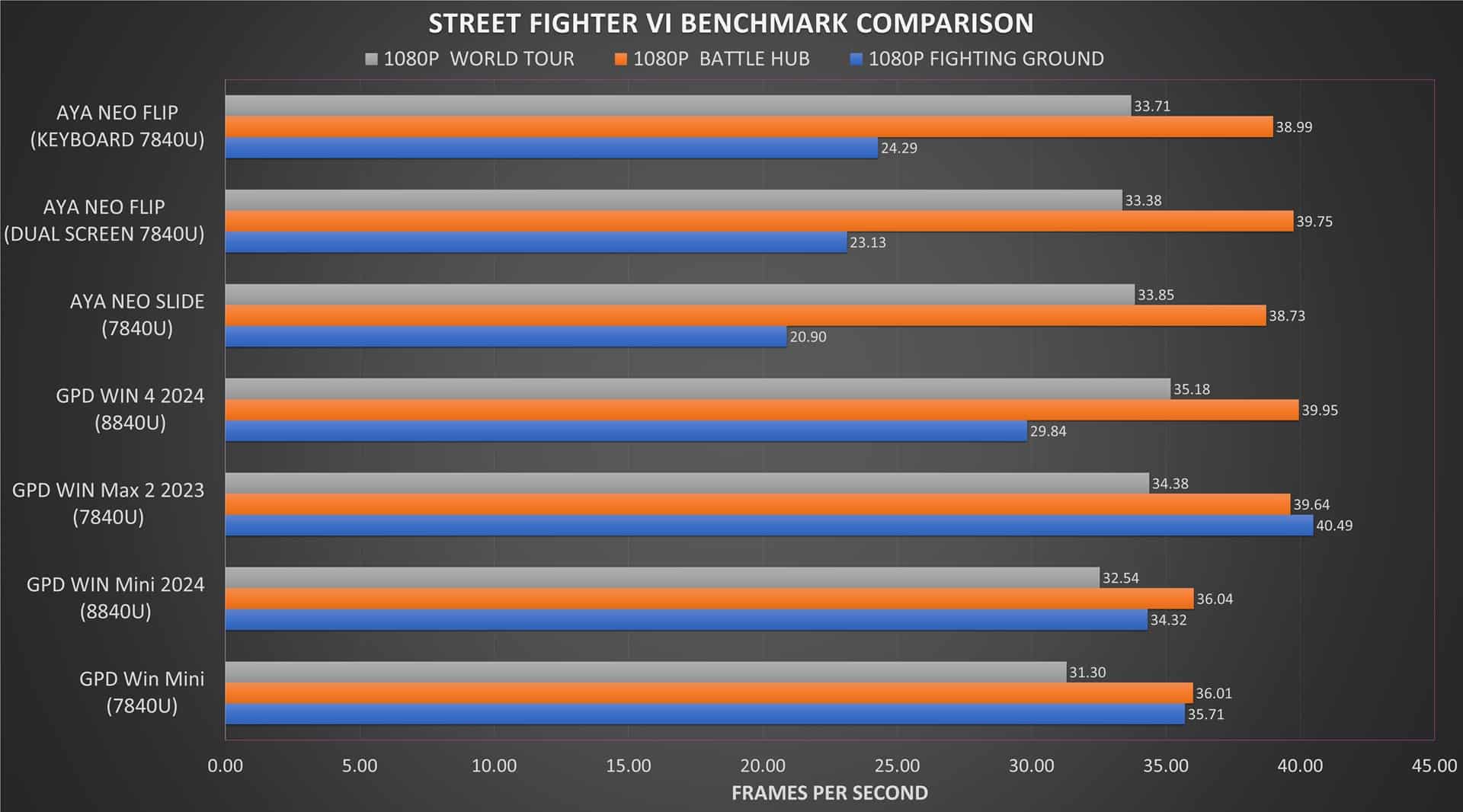 Funcionando con los ajustes gráficos más altos. Rendimiento inferior a 1080P 28W TDP en comparación con el GPD WIN 4 2024 e incluso el PC de juegos compacto GPD WIN Mini original. La diferencia es sólo un marco o dos, pero notable.
